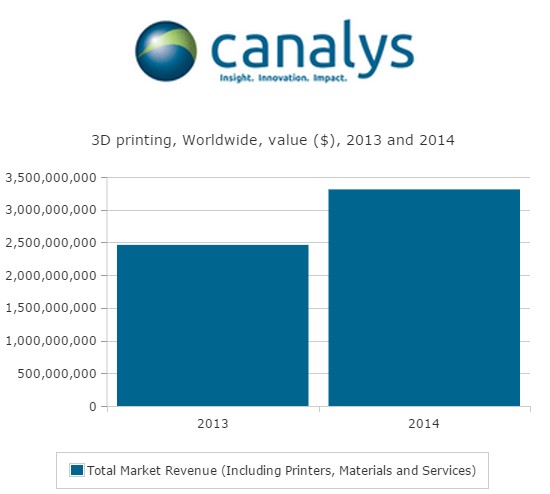 Выручка от продажи 3D-принтеров и расходных материалов для них и сопутствующих услуг выросла до $ 3,3 млрд, увеличившись на 34% по сравнению с 2013. По итогам предыдущего года выручка составляла менее $2,5 млрд.